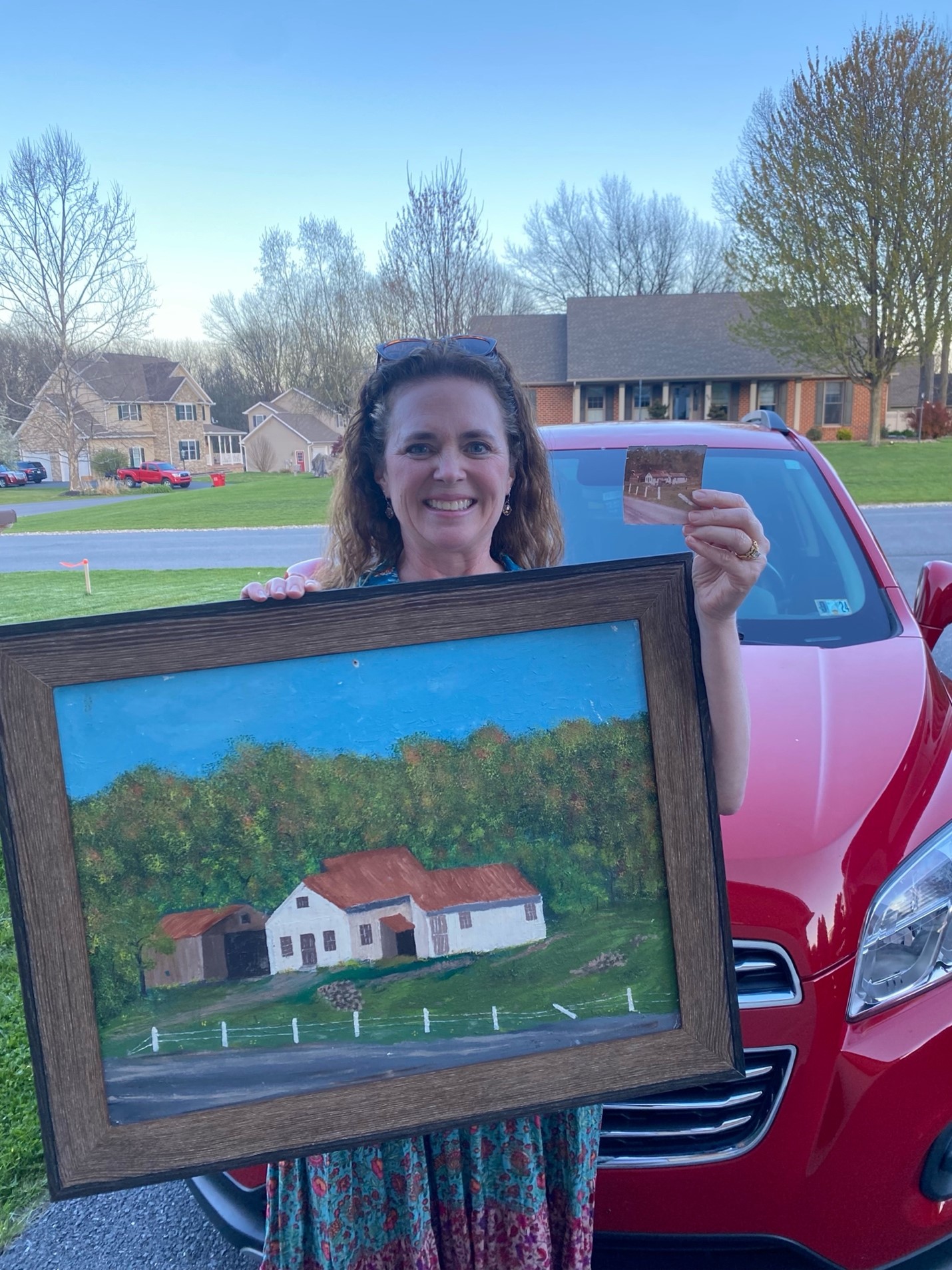 The small town of Belleville was full of hustle and bustle just like every Wednesday in the summer at the Sale Barn. Cars of all shapes and sizes were mixed with the Pennsylvania Dutch buggies that made themselves at home in their designated places in the grassy parking lots. There were no noticeable differences in the interactions with one another. Friendliness was the culture, and it didn’t take long to feel you belonged there. People of all ages with children in bonnets and barefoot, and children in baseball caps and sneakers, held hands with their parents looking forward to piping hot goodies for lunch or baked goods from the pastry tents. The girls, who were now women, headed for the rummage area. They had just arrived, and in the anticipation to enjoy the day, Bird’s eyes scanned the sights ahead of her. Little did she expect what was waiting for her. It was if she had been supernaturally nudged when her eyes transported into two telescopic lenses at the sight a short distance away where she saw it. The booth at the corner of the lot had a simple primitive painting and its familiarity struck her. Goose bumps covered her insides from her head to her toes like a parade of honking trumpeters heralding her entry and she said to her friend, astonished, “Angie, Mamaw painted that. I’m sure she did!” Bird stepped away, then stepped toward the painting again. How could this be? They scurried to the woman tending the booth where it was displayed on a rack, gleaming with the price tag of one dollar. The girls asked the booth attendant where it came from, and she had not a clue. Bird trembled, still filled with awe, and pulled a dollar from her purse. She had become numb at what had transpired and tried to wrap her head around how long this painting had been missing from the family homestead of long ago. Mamaw had been gone for fifteen years and before that, she had been in a nursing home for some years. And now the painting belonged to Bird. “Angie, I’m going to see if I can find a picture of this at home hanging on Mamaw’s living room wall.” The girls finished out what was a long day and what was a short day, and Bird parted for home. Her ride home, like always, held the conversation of one voice, hers, and not an audible one in response. She did not need to hear His voice, for He had already spoken to her as if to say, “Would you like to have that?”